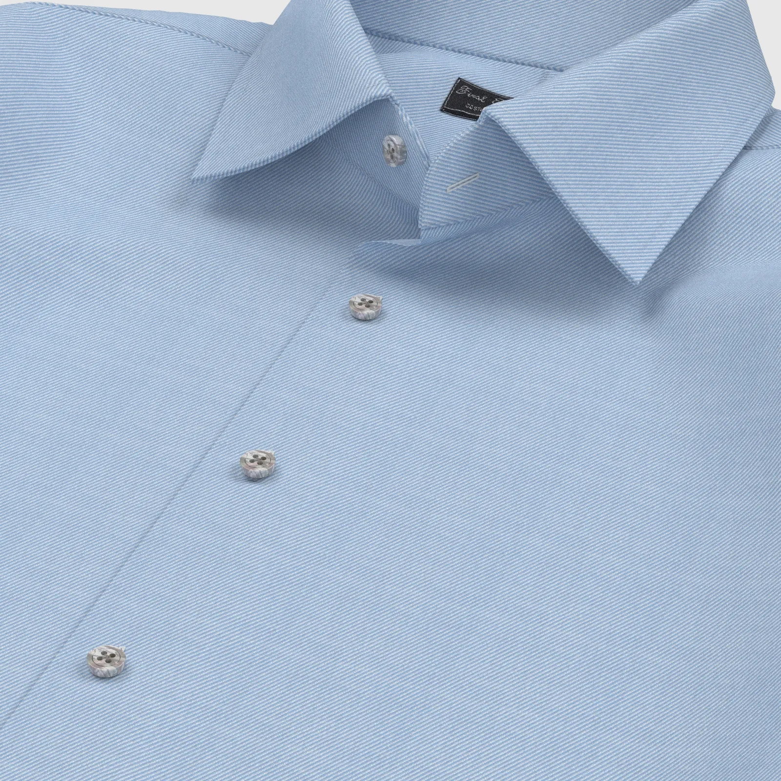 詳細80双糸と上質なサックス・ツイルの綿100%イージーケア素材です。家庭洗濯+軽いアイロンがけですっきり・きっちりと着こなせる忙しいビジネスマンにぴったりの素材です。肌触りも綿100%の風合いを損なわない着心地です。