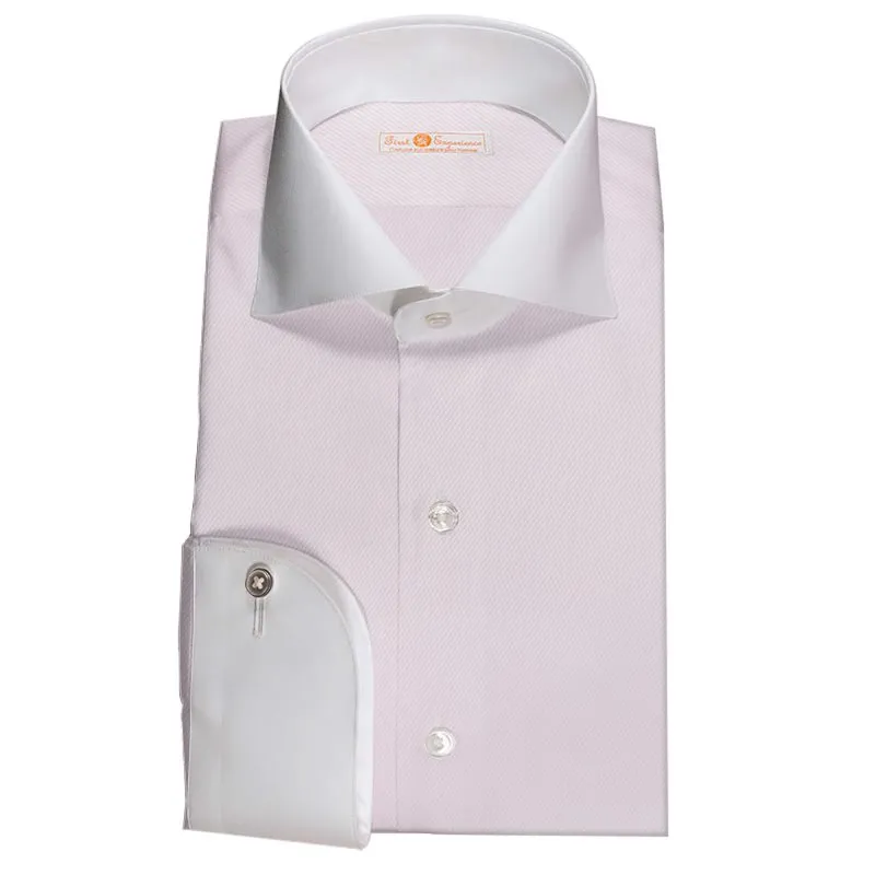 詳細80双糸と上質なピンク・ツイルの綿100%イージーケア素材です。家庭洗濯+軽いアイロンがけですっきり・きっちりと着こなせる忙しいビジネスマンにぴったりの素材です。肌触りも綿100%の風合いを損なわない着心地です。