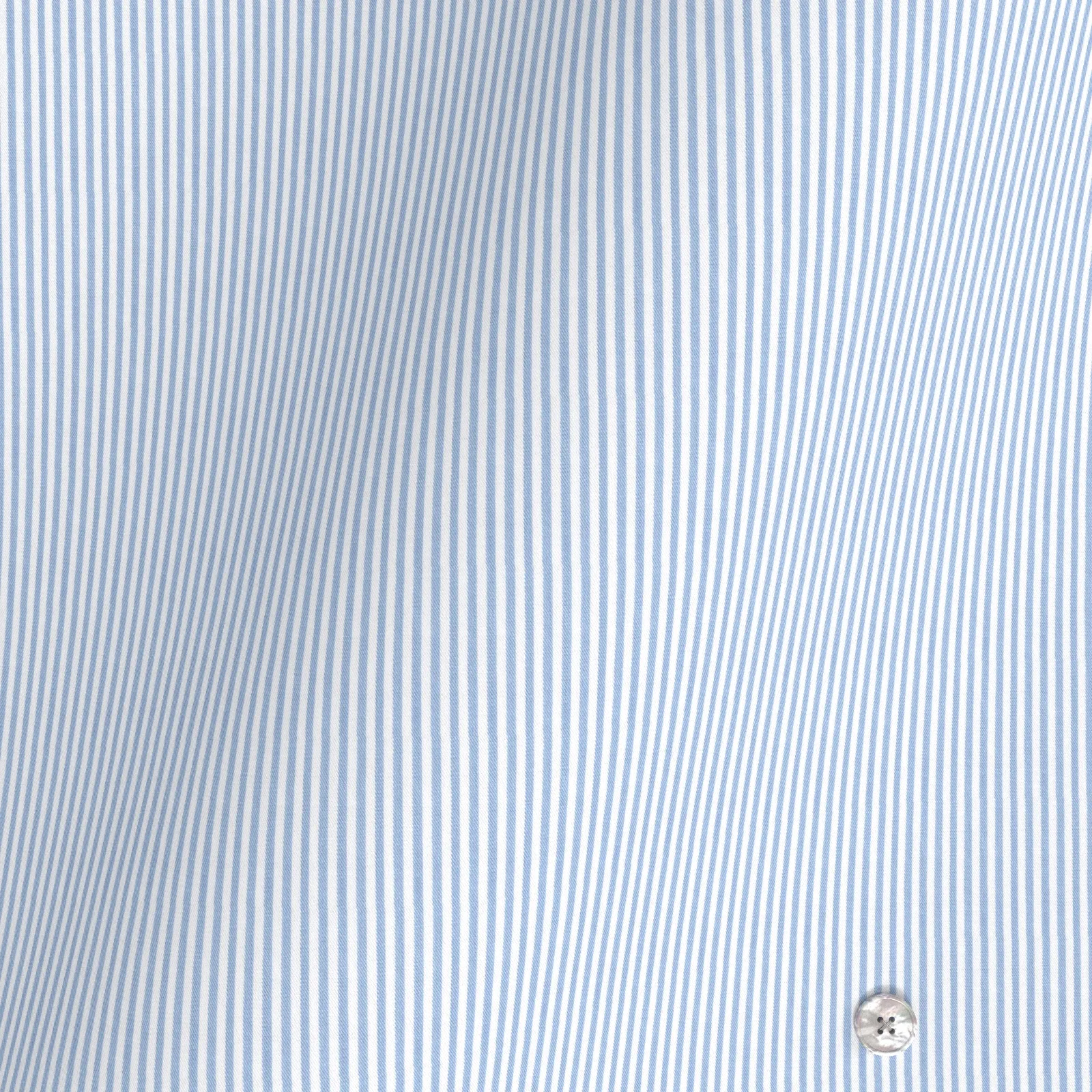 詳細トーマスメイソンの新形態安定生地「JOURNEY」のサックスの細いロンドンストライプ生地となります。