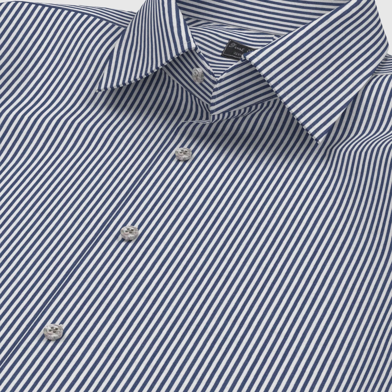 詳細GIZA88の超長綿を使用した100双糸ガス焼きの上質なネイビーのロンドンストライプ生地です。