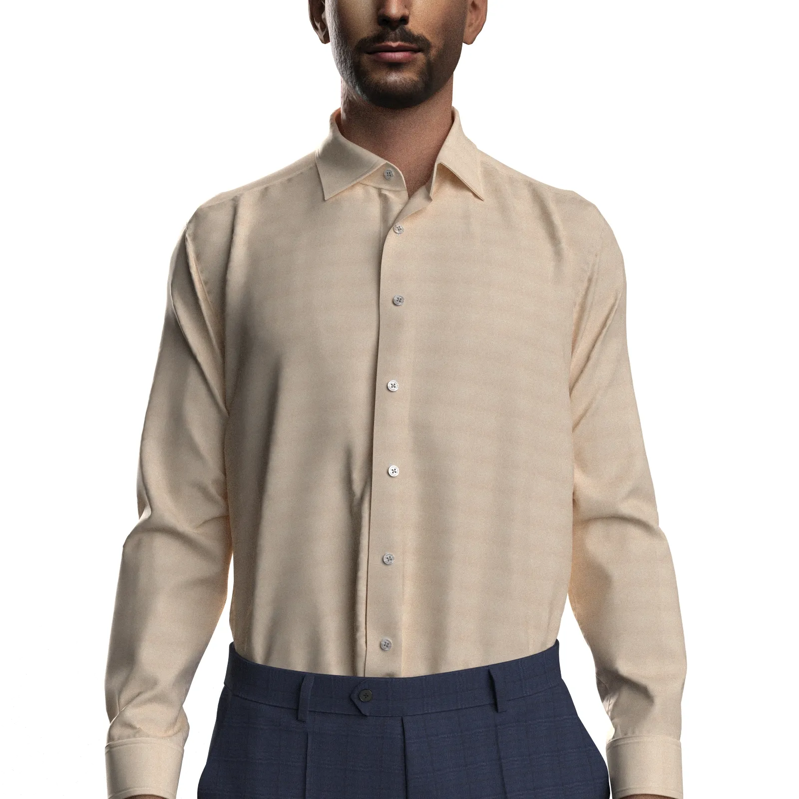 詳細GIZA88の超長綿を使用した100双糸ガス焼きの上質な淡いブラウンのシャンブレー生地です。