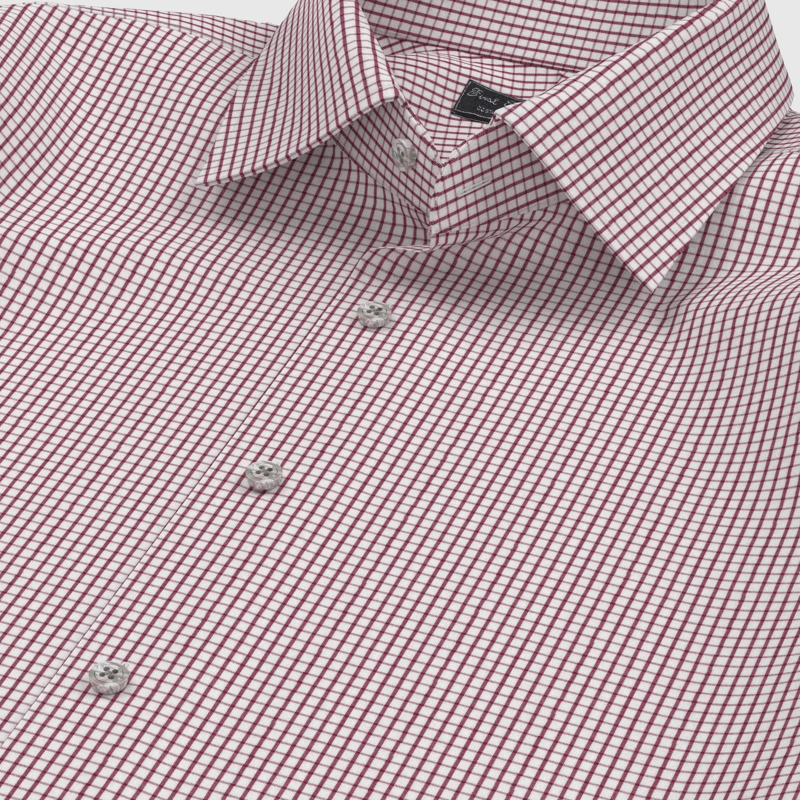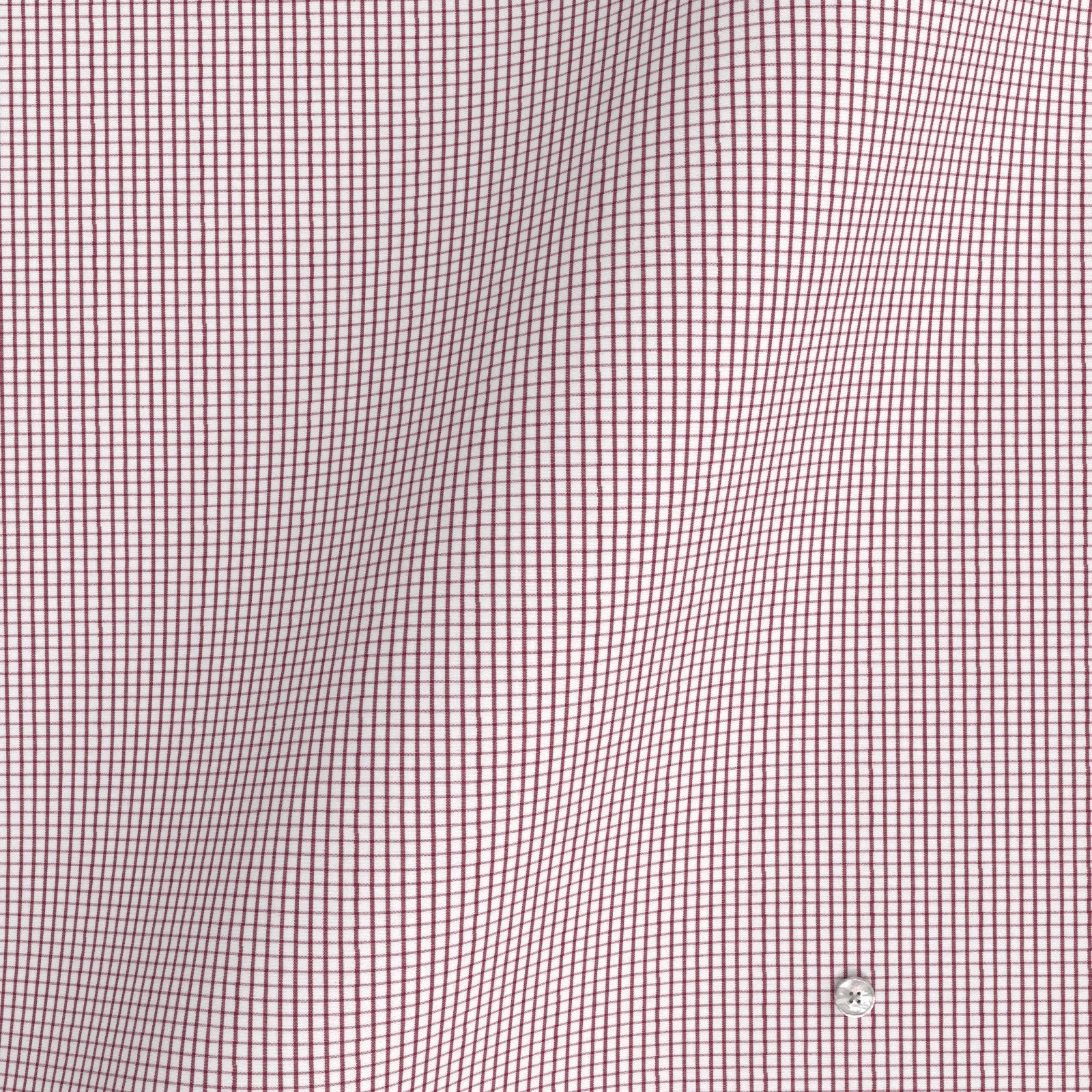 詳細きれいなレッドの格子柄の綿100%イージーケア素材です。家庭洗濯+軽いアイロンがけですっきり・きっちりと着こなせる忙しいビジネスマンにぴったりの素材です。肌触りも綿100%の風合いを損なわない着心地です。