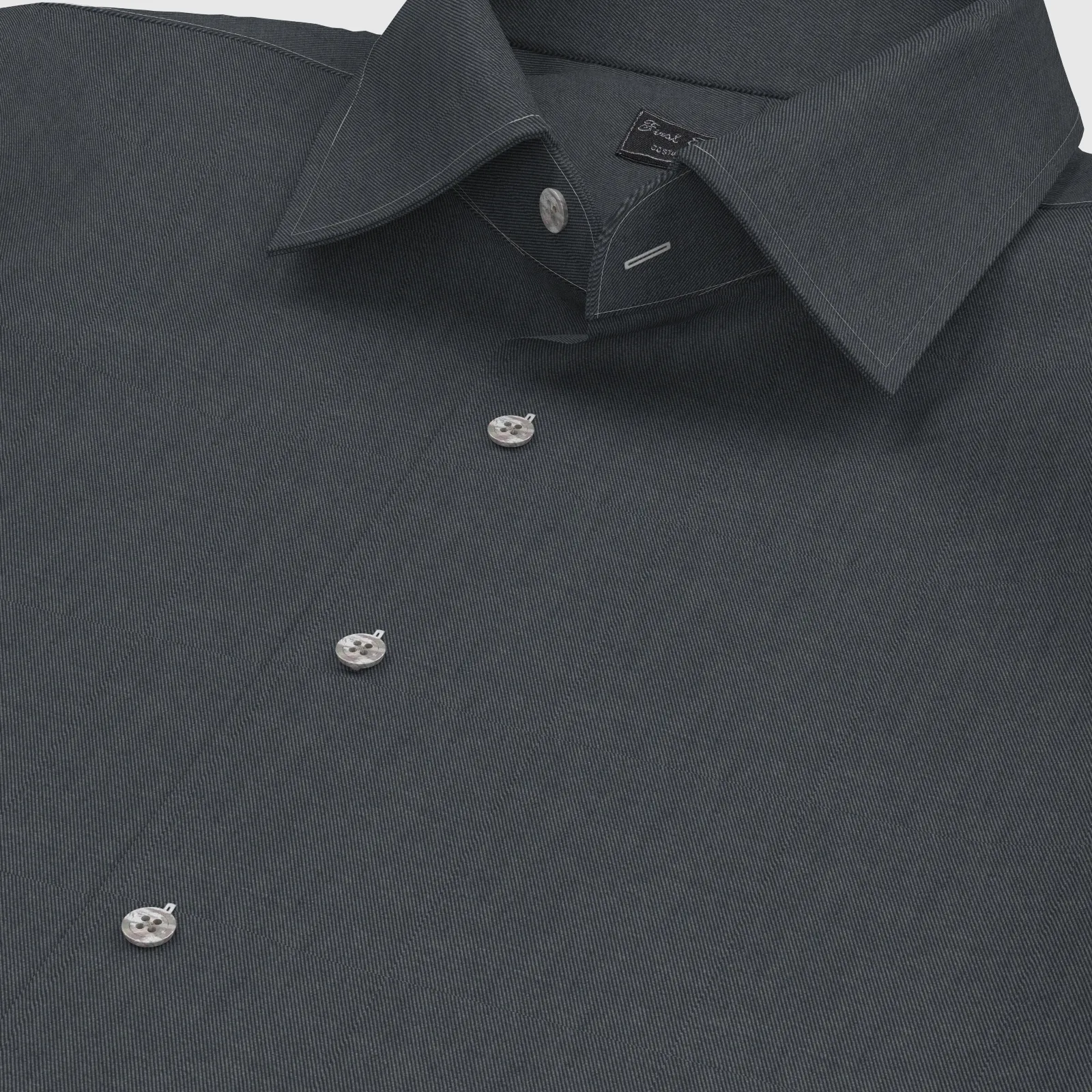 このシャツは襟、カフスなどがホワイトステッチで縫われている仕様となります。