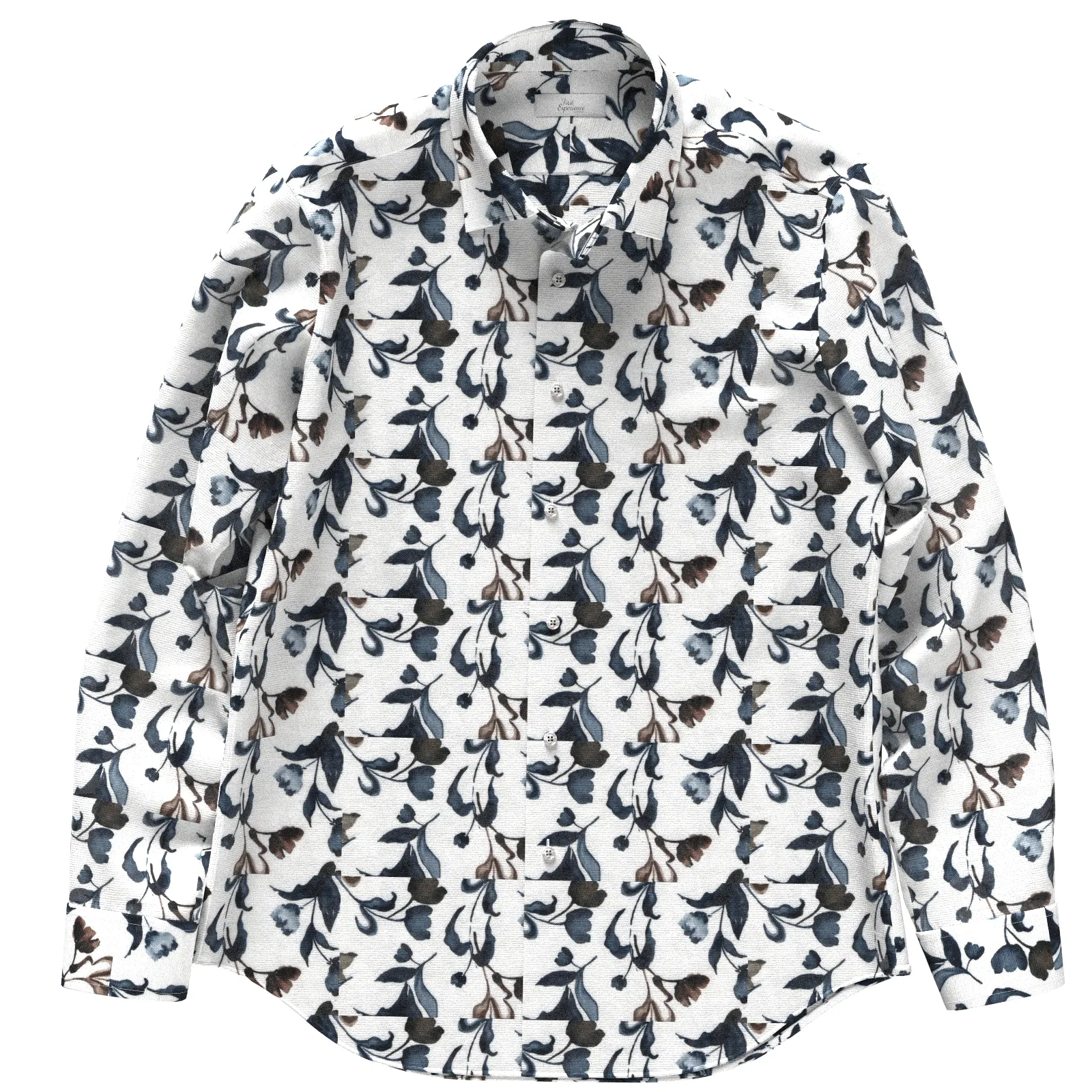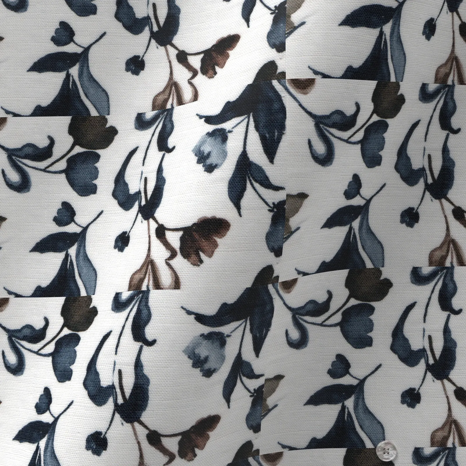 詳細イタリアのTEXTA(テクスタ)社のリネン素材のネイビーとブラウンのフラワー柄プリント生地です。