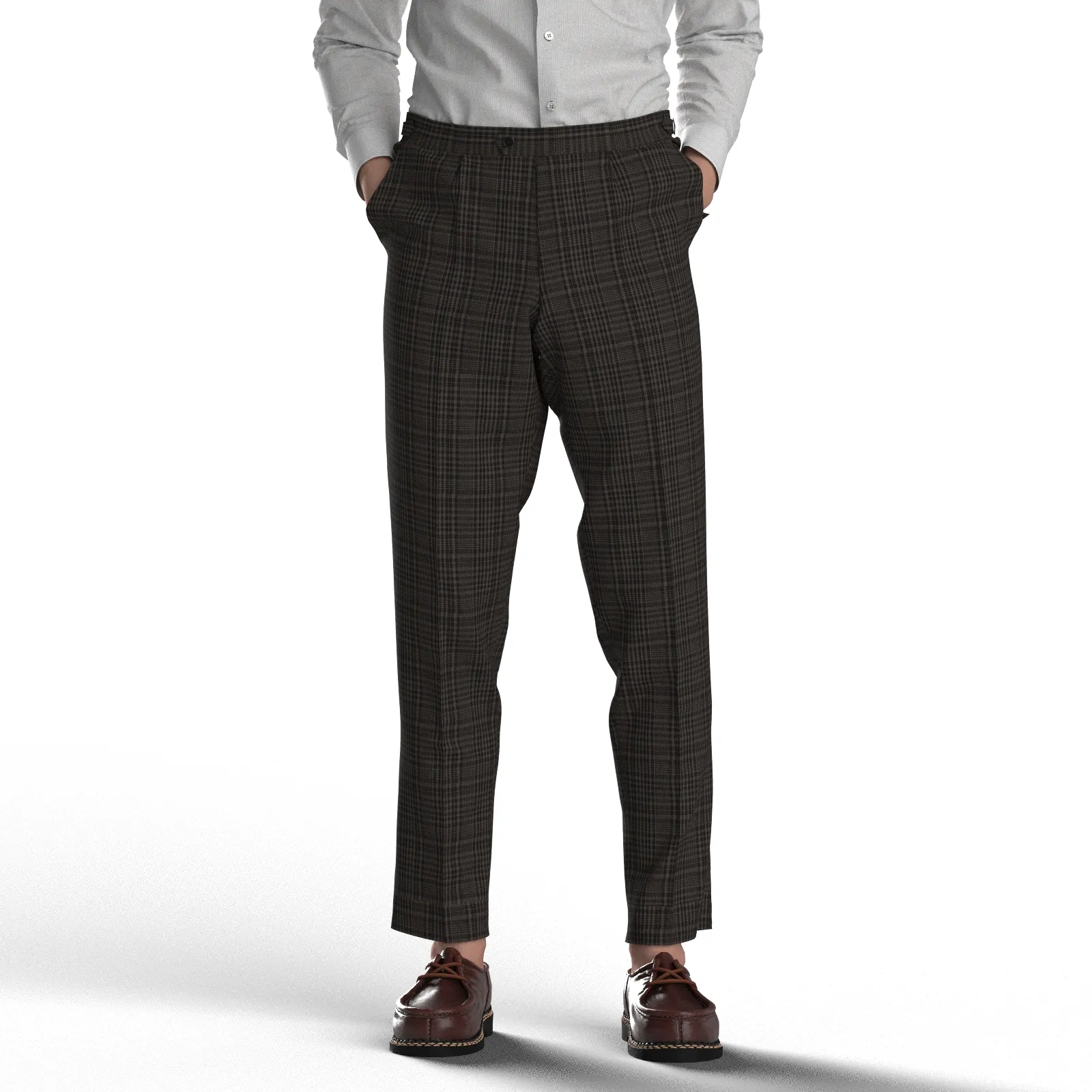 詳細ベーシックでストレッチ性のあるブラウン濃淡の格子柄生地です。