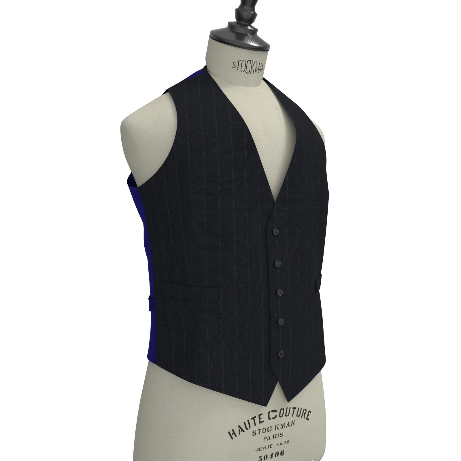 詳細ベーシックでストレッチ性のあるネイビーにチョークストライプの生地です。